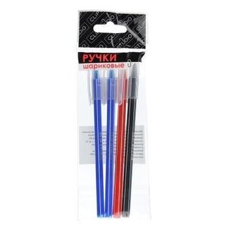 - Набор ручек шариковых 4 шт (2с, 1ч, 1к), масляные чернила, 0,7мм, в пакете с подвесом синий, черный, красный в каталоге Товары для дома из пластика в России;