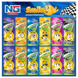 - NEW GALAXY Ароматизатор бумажный Смайл, дисплей 60 штук, цена за 1шт в каталоге Товары для дома из пластика в России;
