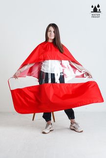 Описание модели · Модель VINDU - это по форме классический парикмахерский пеньюар, только с полосой из прозрачной пленки. · Прозрачная пленка дает возможность вашим гостям пользоваться телефоном (гаджетом) во время процедуры.