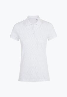 Закажите Поло женское KAREN, белый в горошек - M у компании MODANO Uniform в России на портале Alloy: