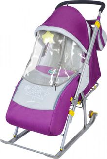 Санки-коляска Ника детям 4 (2 секц.тент, перек.руч, 3пол.спин, сумка, тент)(баклажановый) (НД4)