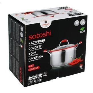 - SATOSHI Венрай Кастрюля 22х12см 4,3л, со стекл. крышкой, индукция, нерж. сталь по выгодной цене 3 675 р. руб.;