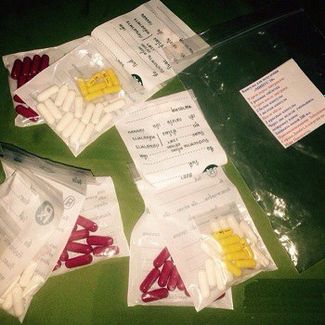 Утро: 1 серо-бордовая капсула 1 белая таблетка (NL) День:(за 30 минут до обеда):1 серо-зеленая капсула3 тёмно-зелёные таблетки Перед сном:1 голубая таблетка2 розовые таблетки1 белая таблетка (маленькая)