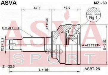 - Шрус Внешний ASVA арт. MZ38 по выгодной цене 2 570 р. руб.;