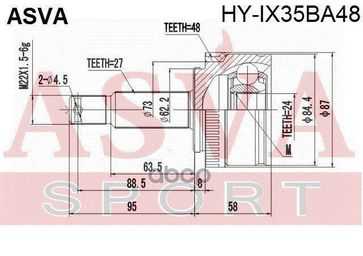 - Шрус Внешний | Перед Прав Лев | Hyundai Ix35 24*64,5*27 Мм ASVA арт. HYIX35BA48 по выгодной цене 6 310 р. руб.;