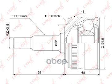 Шрус Внешний | Перед Прав Лев | Mercedes V-Class (W638) V200cdi-V220 Cdi 99-03 LYNXauto арт. CO5302A