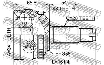 Шрус Внешний | Перед | Ssang Yong New Actyon (Korando C) 2010-2013 34*57.9*28 Мм Febest арт. 1410KORA48