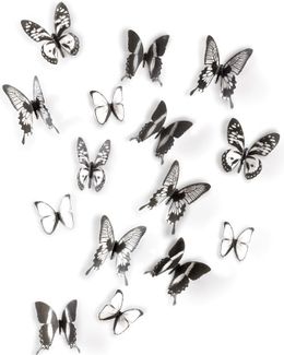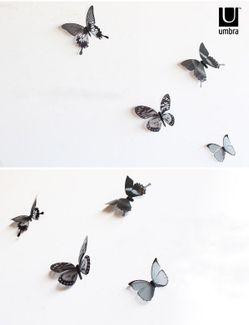 Декор для стен Umbra Chrysalis 15 элементов – 3D декор для стен «Тропические бабочки». В комплект входит 15 бабочек разного размера самая большая - 11х11 см, самая маленькая - 5х5 см , которые крепятся на специальную клейкую липучку не оставляет следов, входит в комплект . Бабочки выполнены в черно-белых и прозрачных тонах, очень красиво смотрятся в интерьере. Минимальная сумма заказа 1500 руб. Возможен самовывоз. Есть доставка.