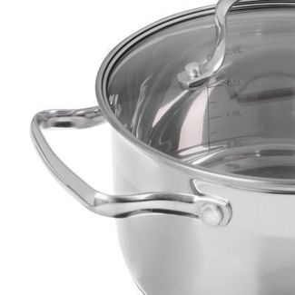 Кастрюля 2,6 литра выполнена из нержавеющей стали, которая отличается своей прочностью. К тому же оснащена мерной шкалой и капсульным индукционным дном, что способствует равномерному нагреву. В комплекте идет стеклянная крышка внутренней посадки с пароотводом и имеются металлические ручки, которые не нагреваются. Купить кастрюлю можно, добавив ее в корзину. None Возможен самовывоз. Есть доставка.