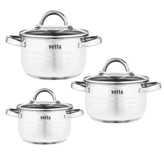 - VETTA Фултон Набор кастрюль 6 пр. (1,5л+2,1л+4,0л) со стеклянной крышкой по выгодной цене 5 209 р. руб.;