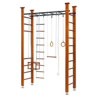 Характеристика Бренд: Карусель Страна происхождения: Россия Способ установки: враспор между полом и потолком Материал: дерево Изготовлено: стойки – сосна, перекладины – береза Высота: от 2,65 до 2,70 м Ширина комплекса: 0,65 м Занимаемая площадь: 0,65 х 1,60 м Диаметр ступени: 35 мм Ширина ступени: 0,56 м Шаг ступени: 0,26 м Тип ступени: дерево, покрыто лаком Допустимая нагрузка: 120 кг Допустимая нагрузка на турник: 120 кг Допустимая нагрузка на навесное оборудование: 50 кг Комплектация: шведская стенка,рукоход, качели, канат, верёвочная лестница, трапеция, кольца пластиковые Вес комплекса: 30 кг Упаковка: картонная коробка и полиэтилен Размеры упаковки (ДхШхВ): 1 место 2,70 х 0,65 х 0,10 м 2 место 2,70 х 0,65 х 0,10 м 3 место 0,52 х 0,33 х 0,14 м 4 место 1,50 х 0,45 х 0,06 м Возрастная категория: 3+ None