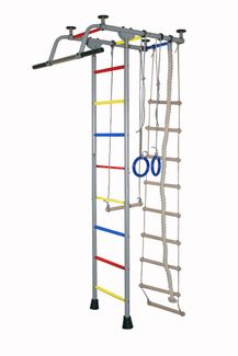 Характеристика Бренд: Крепыш Страна происхождения: Россия Способ установки: враспор между полом и потолком Материал: металл Высота: от 2,40 до 2,75 м Ширина комплекса: 0,49 м Занимаемая площадь: 0,60 х 1,10 м Диаметр трубы: 38 мм Толщина металла: 1,5 мм Диаметр ступени: 26 мм Ширина ступени: 0,41 м Шаг ступени: 0,26 м Тип ступени: металл с ПВХ покрытием желтого, голубого и красного цвета Допустимая нагрузка: 100 кг Допустимая нагрузка на турник: 100 кг Допустимая нагрузка на навесное оборудование: 50 кг Комплектация: турник, канат, кольца, верёвочная лестница, трапеция Вес комплекса: 30 кг Упаковка: полиэтилен Размеры упаковки (ДхШхВ): 1 место 1,20 х 0,20 х 0,20 м Возрастная категория: 3+ None
