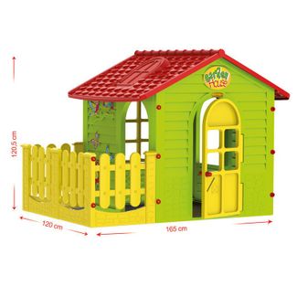 Mochtoys, Игровой домик с забором Большой вместительный домик для игры как в помещениях, так и на улице. В домике открываются окна и двери. Стена детского пластикового домика украшена детскими рисунками. Устойчивая и надежная конструкция. Домик и забор изготовлен из высококачественного упрочненного пластика. Материал не выгорает на солнце и морозоустойчив. Минимальная сумма заказа 500 руб.