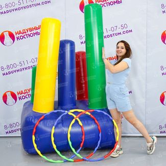 Кольцеброс Нет непонятных названий в русском языке, словосочетания прямым смыслом сообщают об объекте или предмете. Так и с этим известным простейшим, но очень популярным аттракционом – кольцеброс. Берите кольца и бросайте на цилиндры. Насколько весёлое это занятие узнайте из первых рук, прямо из своих. Аттракцион надувной герметичный, большой, но компактный – лишь сдуйте и упакуйте его. Но когда он уже надут - не удержаться, так и тянет посоревноваться со своими друзьями или коллегами по работе. Не сидите долго у телевизора, не валяйтесь неделями на солнце, не валяйте дурака употребляя алкоголь - отдайте предпочтение активному времяпровождению и высвободившийся дофамин улучшит ваше настроение. Кольцеброс спортивный Пусть эта игра не включена в список олимпиад и не проводятся массовые турниры, но в неё можно играть дома или у себя во дворе. Легенда советского времени, дворовых и домашних медитативных забав, вырабатывала упорство у детей, улучшала координацию и повышала меткость. Не каждый вид спортивных соревнований может этим похвастаться. Игровой снаряд – кольцо или обруч требует своего подхода, обладая своей динамикой. Правила игры участники могут устанавливать самостоятельно, например, разное количество очков, присуждаемое за попадание на конкретный стержень – чем сложнее или дальше, тем выше бал. Изготовление кольцеброса Аттракцион изготовлен из прочного ПВХ материала, надуть его не сложнее, чем матрас для плавания, используйте простой ножной или электрический насос. Компактные размеры в сдутом состоянии и небольшой вес позволяют транспортировать его без труда или перевозить в багажнике автомобиля. Да хоть в трамвае, ведь в комплекте идёт удобная транспортировочная сумка. На аттракцион предоставляется гарантия. Доставка производится транспортными компаниями. Производственная компания и магазин для аниматора – Надувные Костюмы ком Горячая бесплатная телефонная линия 8 800 511 07 50 Номер для сообщений по Whatsapp +7 982 666 94 88 info@promokostum.com © Все права
