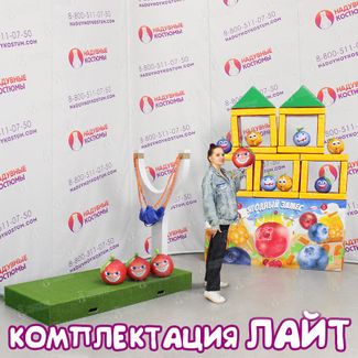 В комплектацию Рогатка Лайт входят следующие снаряды-игрушки к Фруктовому и Ягодному замесу соответственно: помидор/брусника ? 0,3м - 3 шт. арбуз/черника ? 0,25м - 4 шт. груша/голубика ? 0,25м - 2 шт. апельсин/морошка ? 0,25м - 2 шт. Найти оригинальные командные развлечения сейчас зачастую бывает довольно сложно из-за обилия на рынке чего-то приевшегося, что используют все в построении тимбилдинговых и развлекательных мероприятий. «Замес» с большой рогаткой – пример интересной командной игры как для детей, так и для взрослых. Суть командной игры Принцип её основан на одной популярной мобильной игре, и разобраться с тем, что нужно делать сможет даже ребёнок. Натягиваешь рогатку посильнее, кладёшь в неё ягоду или озорной фрукт и пытаешься снести как можно больше построек или точно попасть в цель. Шумно, весело и интересно! Лучший, а главное, безопасный способ выплеснуть энергию. Комплектация Лайт позволяет построить пять полноценных домиков с двумя крышами наверху, чтобы разместить среди стен мишени. Можно так же проявить креативность и построить более сложные конструкции, чтобы усложнить игрокам задачу. Между Фруктовым и Ягодным замесом разница невелика: различаются только снаряды и чехол для подиума. Возможности в организации и проведении подвижных игр «Замес» отличный вариант соревновательной игры, которую можно провести как в помещении, так и на улице. Организовать такую игру для компании представляется возможным в совершенно разных целях: детское мероприятие, соревнования, популярный ныне тимбилдинг, корпоратив и просто активное времяпрепровождение со своими друзьями и близкими. Такое развлечение обязательно увлечёт всех от мала до велика: взрослые могут помогать своим малышам натягивать рогатку чтобы обрадовать их, подросткам не будет стыдно запульнуть пару раз в ехидно улыбающуюся ягоду и снести её подальше. Подобные игры неотъемлемая часть активного отдыха для всей семьи, и ими можно привлечь клиентов на каком-либо общественном мероприятии: Масленице, ле