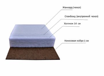 Матрас Valle Mimosa - комфорт и безопасностьЗдоровый сон – важная часть жизни человека, особенного маленького. Чтобы с первых дней заложить основу правильного развития позвоночника малыша, надо строго следовать рекомендациям. Высококачественный матрас Valle Mimosa отвечает всем требованиям ГОСТа и состоит из наполнителей двух видов и съемного жаккардового чехла. Кокосовая койра (спрессованные волокна) придает определенную упругость и жесткость, обладает ортопедическими свойствами. Это воздухо- и влагонепроницаемый гипоаллергенный материал, натуральный и долговечный. Холлокон – экологически чистый инновационный продукт, устойчивый к деформациям, практичный, теплосберегающий. Не горит, не боится сухой и влажной чистки. Стандартные размеры позволяют использовать матрас Valle для детской кровати любой модели и производителя. Жесткость средней жесткостиЗима-лето естьОснова беспружинныйРазмер 120х60х15смРазмер спального места 120х60Состав Сторона А: кокосовая койра 10ммСторона Б: Hollcon 140ммвнутренний чехол (спанбонд)чехол на молнии из хлопкаСъемный чехол есть Минимальная сумма заказа 500 руб.