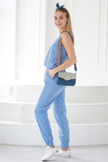 Комбинезон брючный из хлопка - Malibu | голубая полоска