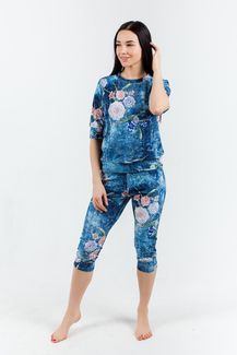 - Костюм женский Таис с бриджами синий джинс по выгодной цене 749 р. руб.;