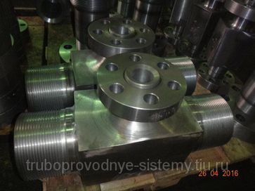 Тройник фланцевый Ду 100х100 ГОСТ 22801-83 Настоящий стандарт распространяется на переходные и проходные тройники с резьбовыми фланцами для трубопроводов с линзовым уплотнением, применяемых на предприятиях отраслей нефтехимической промышленности и для производства минеральных удобрений, на Ру св. 10 до 100 МПа (св. 100 до 1000 кгс/см2) Дy х Д1y от 6х6 до 200х200 мм при температуре среды от минус 50 до плюс 510 °С. Присоединительные резьбовые концы - по ГОСТ 9400-81Технические требования - по ГОСТ 22790-89 Пример условного обозначения тройника с фланцами исполнения 4, Ду 100 мм и Ду 100 мм, на условное давление Ру100 МПа, из стали марки 20Х3МВФ:Тройник 4-100Х100-100-20Х3МВФ-ГОСТ 22801-83 Подход к каждому клиенту индивидуальный. Весь ассортимент товаров сертифицирован и имеет заключения испытаний. Мы гарантируем качество изделий и предоставляемых услуг. Предоплата 50%, срок изготовления от 15 дней, доставка по городу бесплатно, доставка во все регионы России осуществляется по договоренности, самовывоз по адресу: г Бор, ул. Луначарского, д. 128 пн.-пт. с 7:00 до 18:00 сб.,вс. выходной. Для более широкой информации о нас Вы сможете узнать по телефону. Наш отдел продаж ответит на все интересующие Вас вопросы, поможет разобраться с требованиями спецификаций проектных организаций. truboprovodnye-sistemy.tiu.ru</span