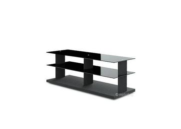 Тумба для телевизора. Подставка для установки телевизора с диагональю экрана 37"- 55", размещения 2-4 аудио-видео компонентов и АС центрального канала. Каркас ламинированный ДСП и окрашенный аллюминий. Три полки из закаленного, полированного стекла. Макс. нагрузка на верхнюю полку 30 кг. Макс. нагрузка на среднюю полку 15 кг. Макс. нагрузка на нижнюю полку 30 кг. Cтекло чрезвычайно устойчиво к царапинам и легко очищается. Эстетический и исключительно легкий дизайн. Максимальная нагрузка до 75 кг. Кабель-канал, что-бы скрыть провода и подключенные к сети кабели. Габариты тумбы (Ш х В х Г), мм: 1100 х 416 х 393. Цвет полок: Черный. Цвет каркаса: Черный. Производитель: Россия. None