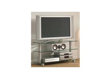 Тумба ТВ. Серия SCREEN. Подставка для установки телевизора с диагональю экрана 37"- 52", размещения 2-4 аудио-видео компонентов и АС центрального канала. Каркас полированный аллюминий (80 мм). Три полки из закаленного, полированного стекла (10 мм). Кабель-канал, что-бы скрыть провода и подключенные к сети кабели. Встроенные ролики для свободы передвижения. Cтекло чрезвычайно устойчиво к царапинам и легко очищается. Идеальное сочетание экрана из прозрачного стекла и алюминия просто волшебно. Эта мебель способна увлечь благодаря четкому дизайну и высокому качеству отделки. Максимальная нагрузка на тумбу 100 кг. Габариты тумбы (ШхВхГ), мм: 1050х590х400. Цвет каркаса: Аллюминий. Цвет полок: Прозрачный. Производитель: Германия. None