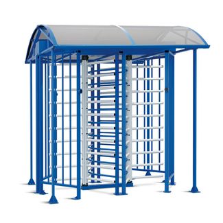 Полноростовой роторный сдвоенный турникет со встроенной электроникой управления и светодиодным таблом с пиктограммами.