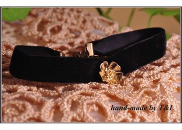Классическая бархотка, крепится ровно по шее. декорирована изящной фурнитурой произ-ва италия позолочение) - цветочек в виде кувшинки. None Есть доставка.