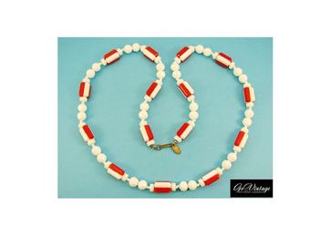 Классные коллекционные винтажные бусы, 40-е, miriam haskell. необычная форма бусин и еще более необычное цветовое сочетание: сочный алый красный на белоснежном фоне. длина колье – 76 см. состояние отличное. маркированы. None Есть доставка.