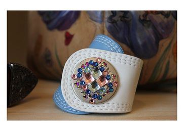 Размер: на запястье 14-17см материал: натуральная кожа, стразы swarovski браслеты "balagura" из натуральной кожи, украшены кнопкой ручной работы из страз и камней swarovski. только в единственном экземпляре!!! None Есть доставка.
