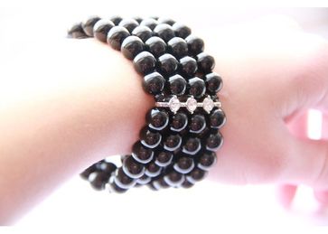 Браслет из черного агат,с фурнитурой под серебро и стразами,на резинке. None Есть доставка.