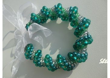 Браслет мятная карамель выполнен из чешского бисера разных размеров. вместо застежки - ленты органзы, которые позволяют придать браслету любой размер. None Есть доставка.
