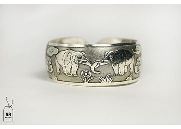 Широкий браслет из серебра низкой пробы с изображением слонов. None Есть доставка.