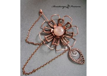 Брошь изготовлена из листовой меди, медной проволоки и бусины клубничного кварца, патинирована и полирована None Есть доставка.