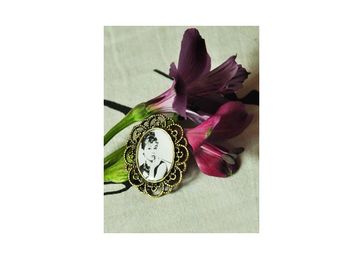 Брошь ручной работы. изображение - известный кадр из фильма "завтрак у тиффани", актриса одри хепберн. брошь может быть в цвете серебро и бронза. None Есть доставка.