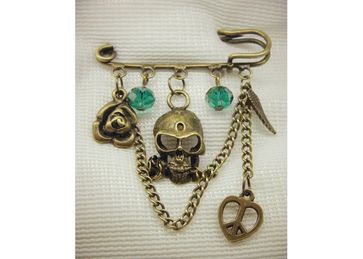 Булавка цвет бронза с подвесками и бусинами из чешского стекла. None Есть доставка.