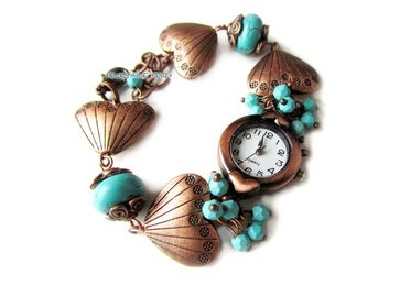 Бирюза, медная фурнитура, кварцевые часы размер регулируется, указывайте обхват запястья при заказе не ронять None Есть доставка.