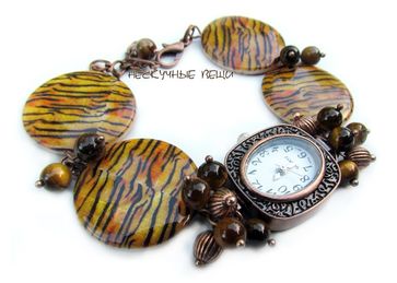 Перламутр, тигровый глаз, медная фурнитура, кварцевые часы не ронять указывайте обхват запястья при заказе None Есть доставка.