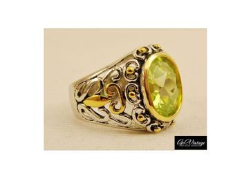Нежное новое кольцо, выполненное из серебра с огромным стеклянным кабошоном, имитирующим перидот. роскошный перстень, смотрите детали на фото. размер – 17,5. кольцо новое, маркировка серебра. None Есть доставка.