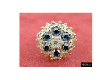 Милое винтажное кольцо из 50-х от vagras. выполнено из металла под серебро и украшено мелкими стразами, имитирующими сапфиры в окружении маленьких "бриллиантиков". кольцо в отличном состоянии, размер - 16,7 мм. маркировано. None Есть доставка.
