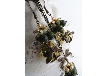 "jungle" - комплект украшений с опалом, аметрином и агатом кулон и серьги) материалы: зеленый опал, аметрин ювелирной огранки редкого зелено-желтого цвета 32,77 кар. каждый), агат, кристаллы и жемчуг сваровски, винтажная американская фурнитура. кулон - 6см цепочка 70см), серьги - 5,5см творческая мастерская бижу-мастер код товара : 002153 None Есть доставка.