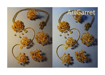 Комплект из волшебных невесомых украшений золотого цвета. все украшеия можно преобрести по отдельности: комплект: каффыпара) 460 руб, кольцо 350 руб, серьги 430 руб, кулон 320 руб art: kp031 None Есть доставка.