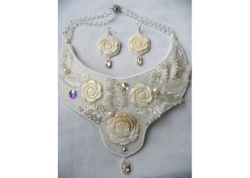 Невероятно красивый комплект! колье достаточно большое, но смотрится очень нежно. подходит под все цвета одежды. выполнено в смешанных техниках вышивка+плетение. None Есть доставка.