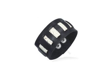Ширина браслета: 3,3 см длина: 21,5 см регулировка размера: да цвет: по краю черный, внутренний слой белый артикул: bbll519 незаурядное сочетание белой и черной кожи в этом браслете выделяет его из общего ряда моделей. данный кожаный браслет подойдет под любую одежду, в которой имеются эти два самые популярные цвета. None Есть доставка.