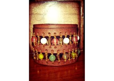 Браслет выполнен из натуральной кожи и натуральных камней,так же использовалась металлическая фурнитура и проволока вес указан не точно! None Есть доставка.