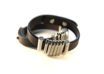 Кожаный браслет с серебром smooth (гладкий)
