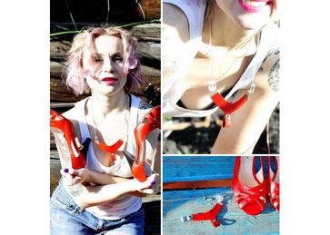 Вероятно, это колье. или необычная подвеска. идеально к белой рубашке. идеально в офис. красная кожа. металлическая цепь и пластиковые прозрачные, как стекло, бусины для облегчения конструкции. None Есть доставка.