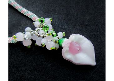 Авторский лэмпворк калла), чешское стекло, розовый кварц, метеллофурнитура, бисер длина 51 см None Есть доставка.