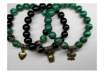 Набор браслетов на руки на резинке, из малахита и черного агата 10 мм., с фурнитурой цвет бронза. None Есть доставка.