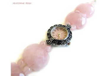 Розовый кварц, кварцевые часы, металлофурнитура, ювелирный тросик размер регулируется, указывайте обхват запястья при заказе не ронять None Есть доставка.