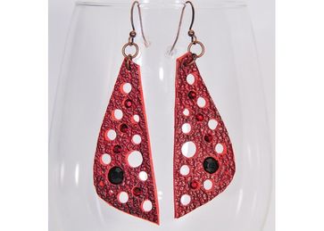 Изящные и прихотливые кожаные серьги завораживают вишневыми бликами страз. самые крупные стразы- черные придают интригу. прекрасно подойдут к костюму стиле "глэм рок". не смотря на обманчивые размеры серьги очень легкие. на фото швензы - латунь + гальваническое покрытие из меди + оксидирование. None Есть доставка.